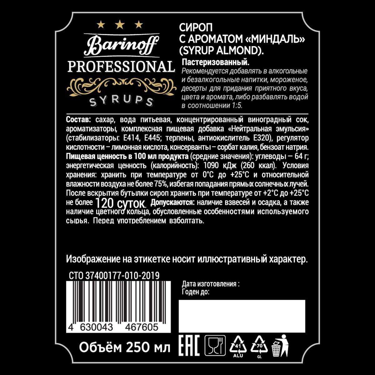Сироп Barinoff Миндаль (для кофе, коктейлей, десертов, лимонада и мороженого), 250 мл/0,25л интересное: