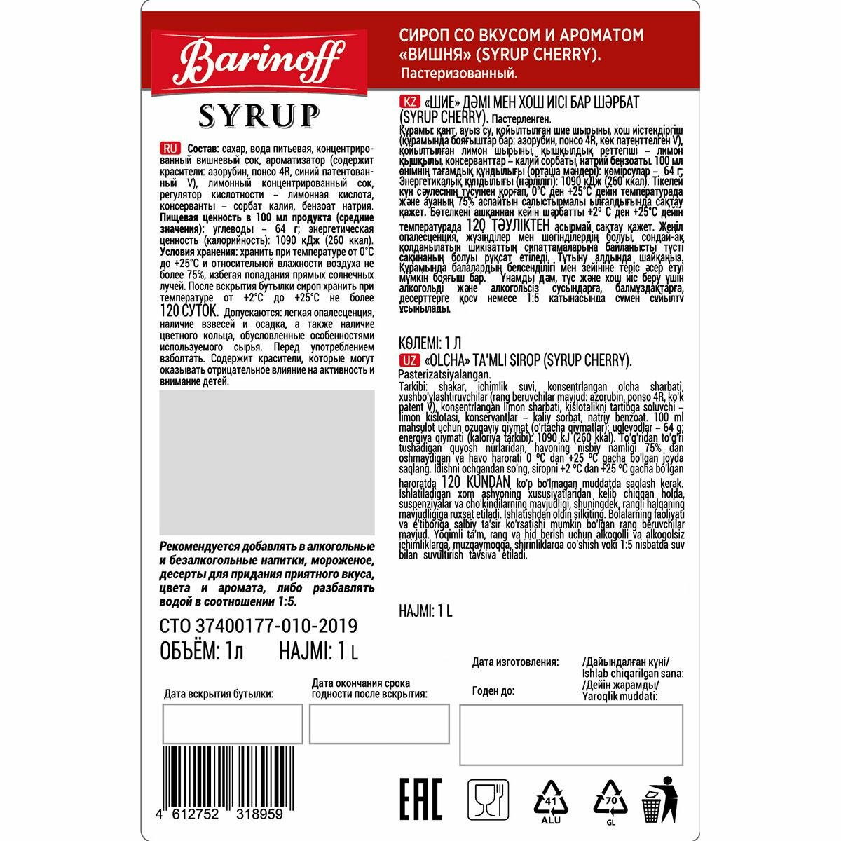 Сироп Barinoff Вишня, для кофе и коктейлей, 1 л