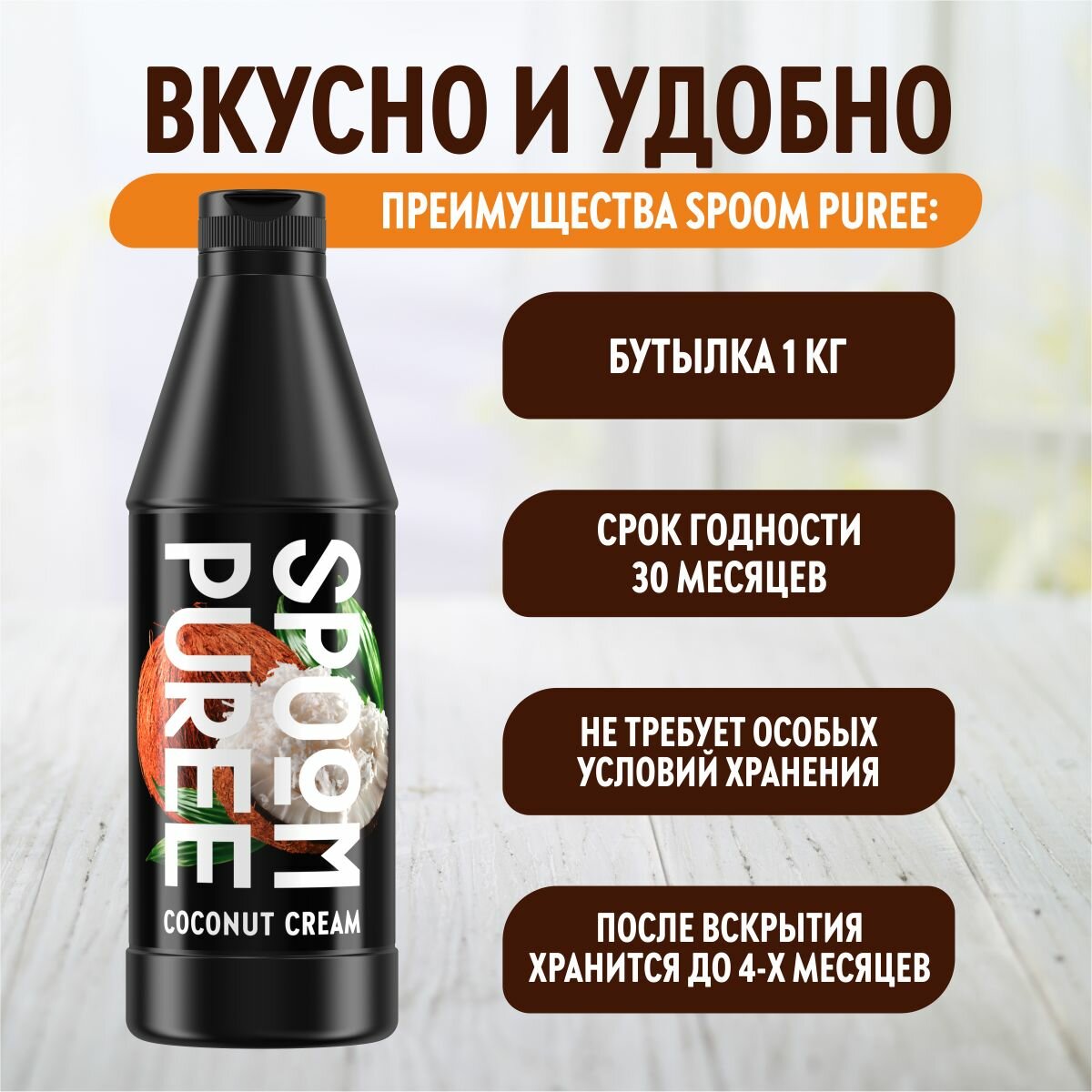 Купить Натуральный концентрат SPOOM PUREE Кокосовый крем 1 кг (основа для приготовления напитков и десертов)