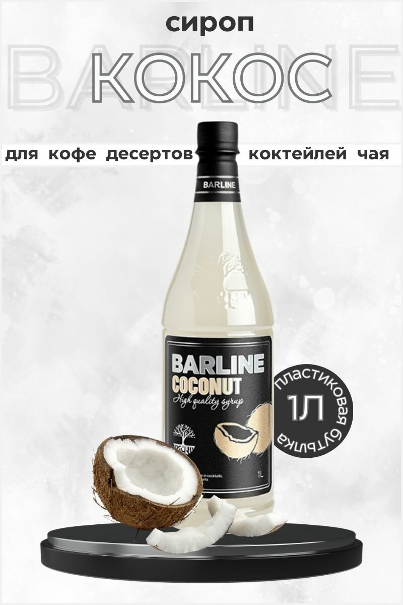 Сироп Barline Кокос (Coconut), 1 л, для кофе, чая, коктейлей и десертов, пластиковая бутылка, Барлайн