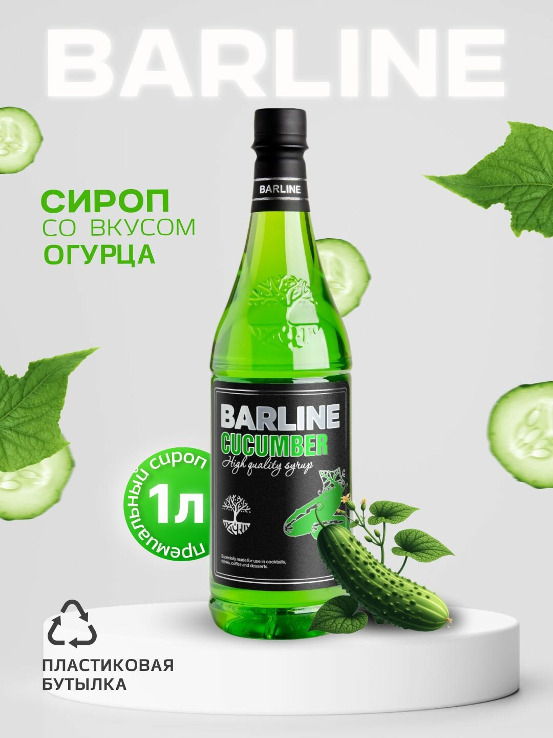 Купить Сироп Barline Огурец (Cucumber), 1 л, для кофе, чая, коктейлей и десертов, пластиковая бутылка, Барлайн