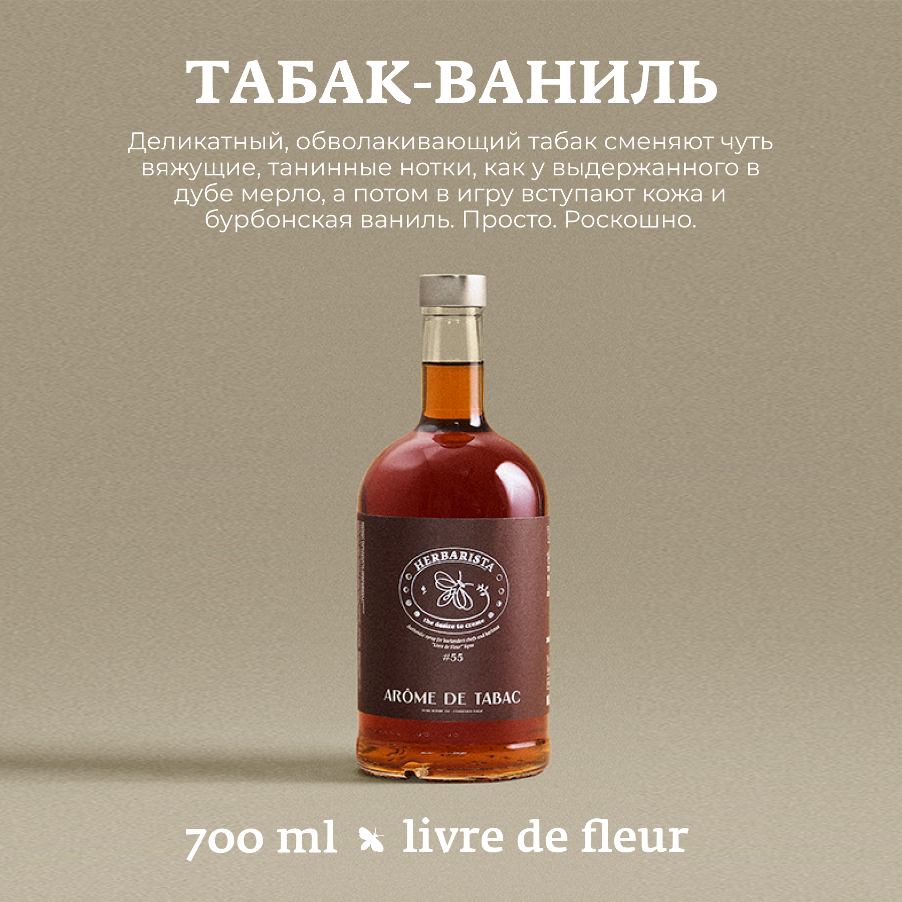Сироп для кофе, коктейлей, десертов и выпечки Herbarista, Табак - Ваниль Arome de Tabac, 700 мл