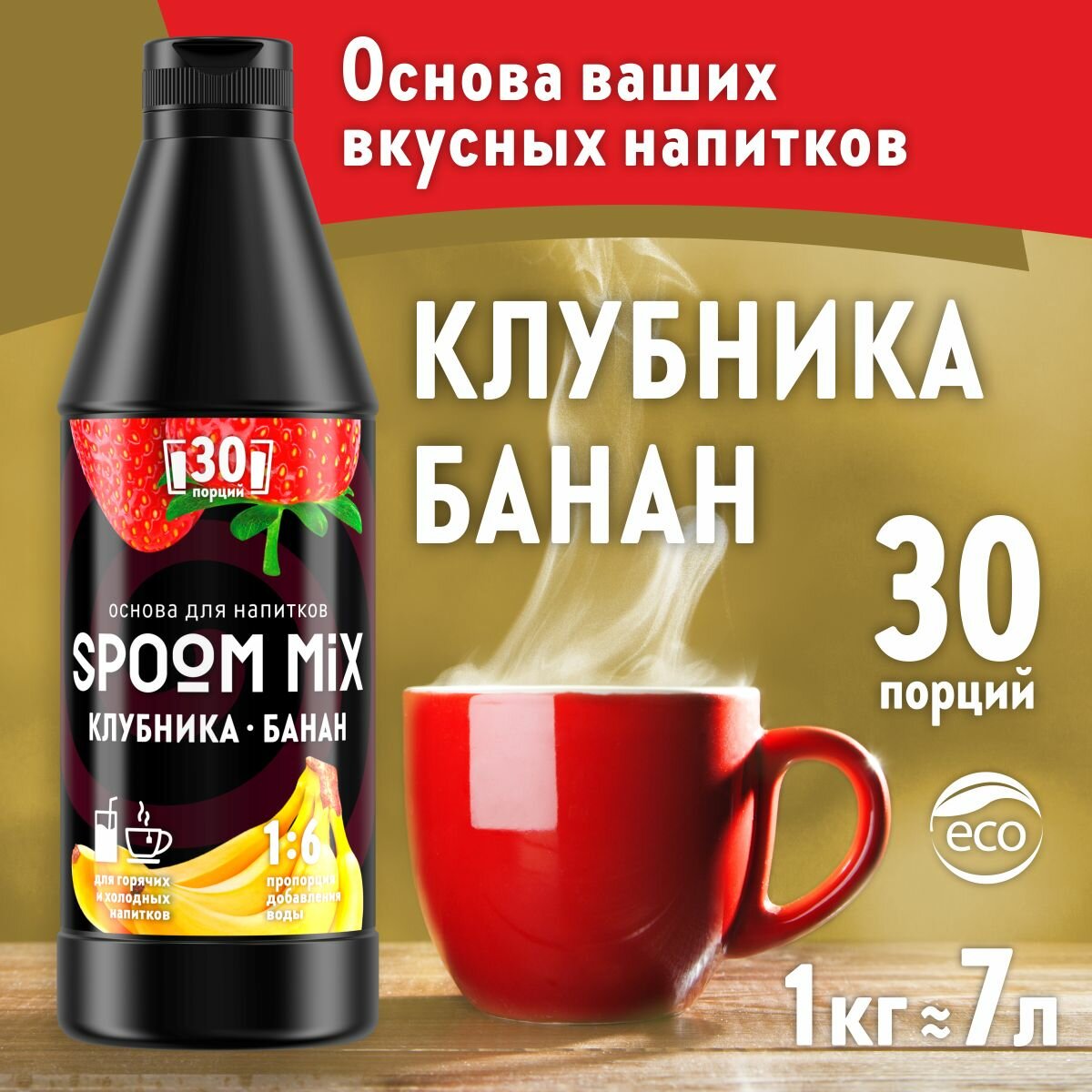 СохранитьОснова для напитков SPOOM MIX Клубника, банан, бутылка 1 кг интересное: