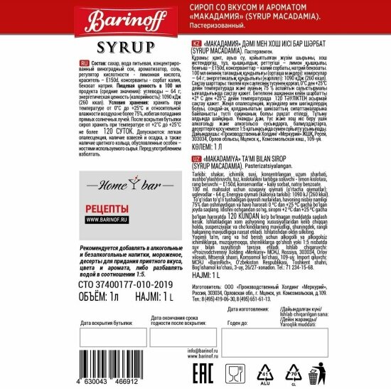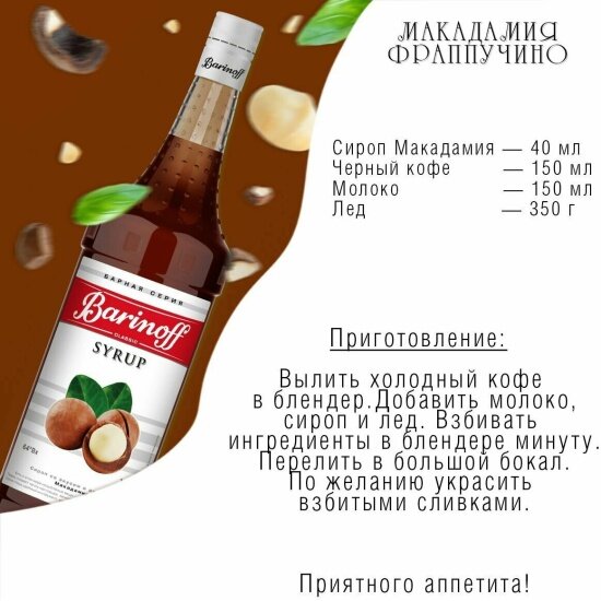 СохранитьСироп Barinoff Макадамия (для кофе, коктейлей, десертов, лимонада и мороженого), 1л интересное:
