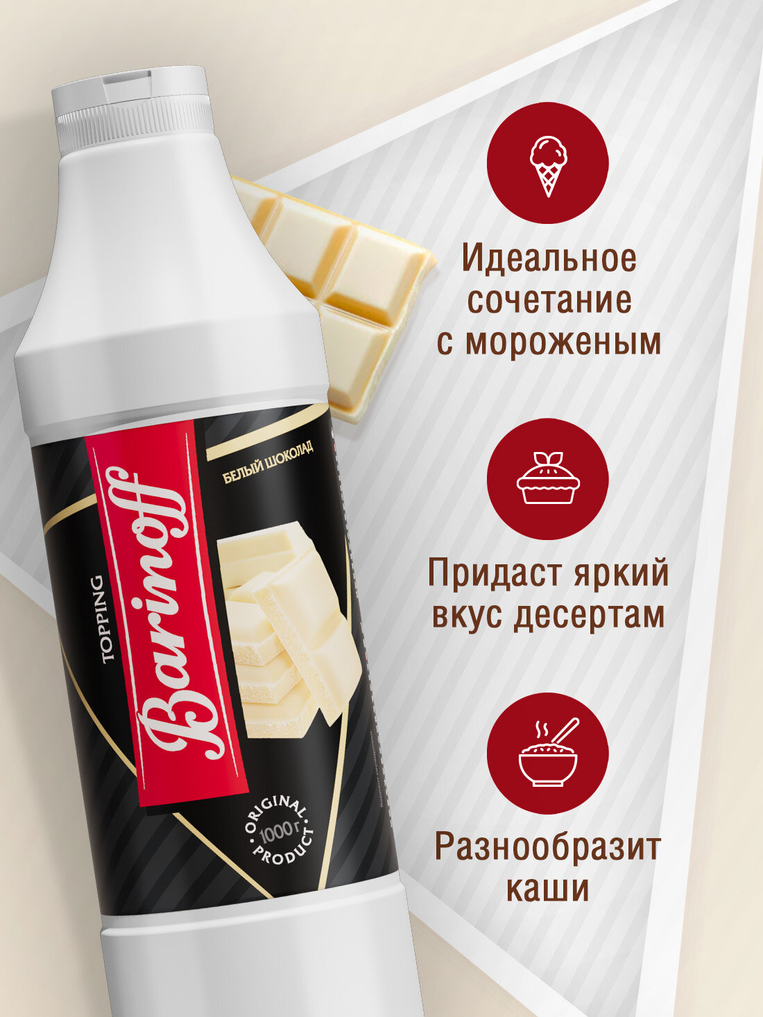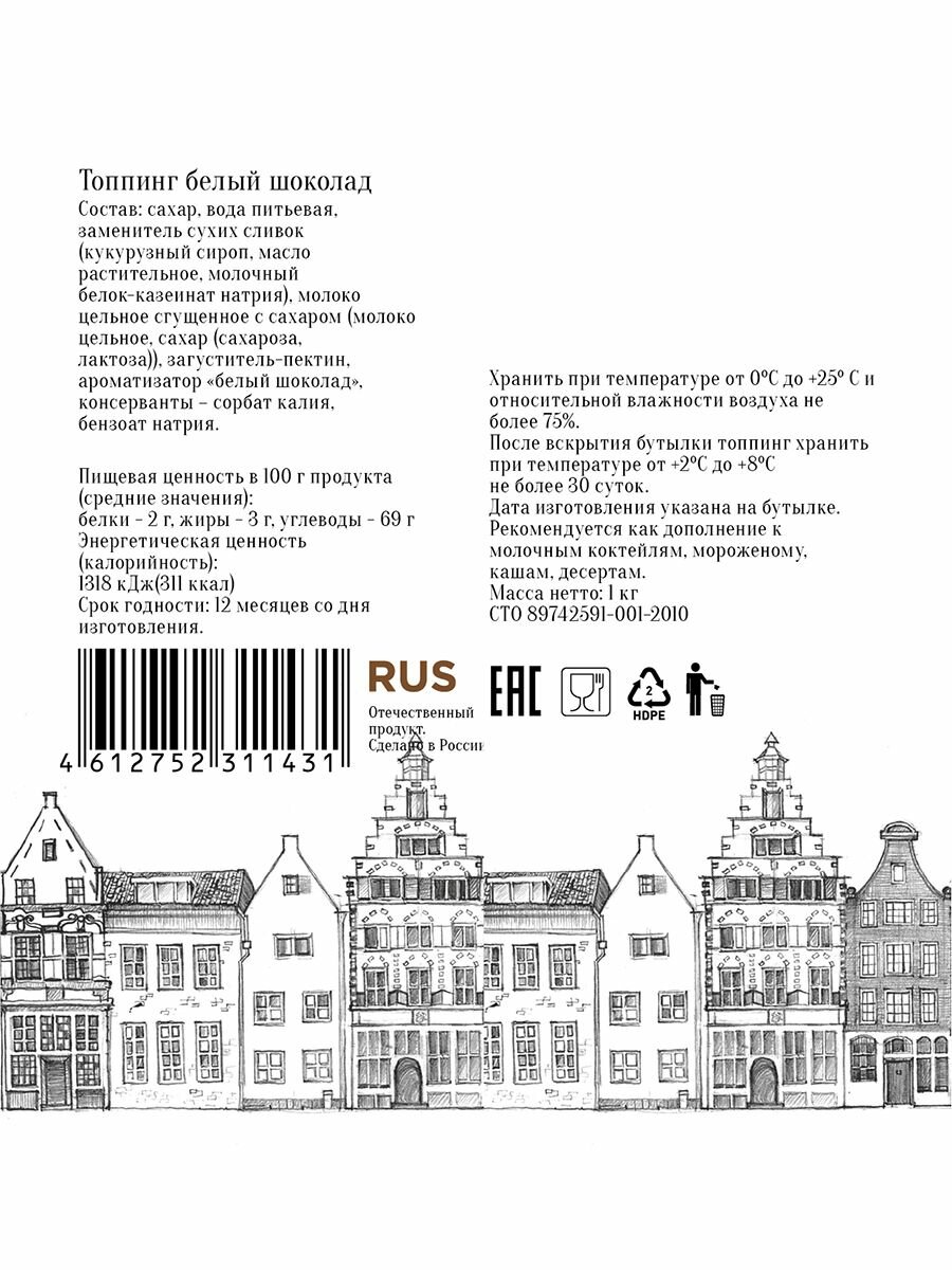 Топпинг Barinoff Белый шоколад (для кофе , мороженого и десертов),1 кг интересное: