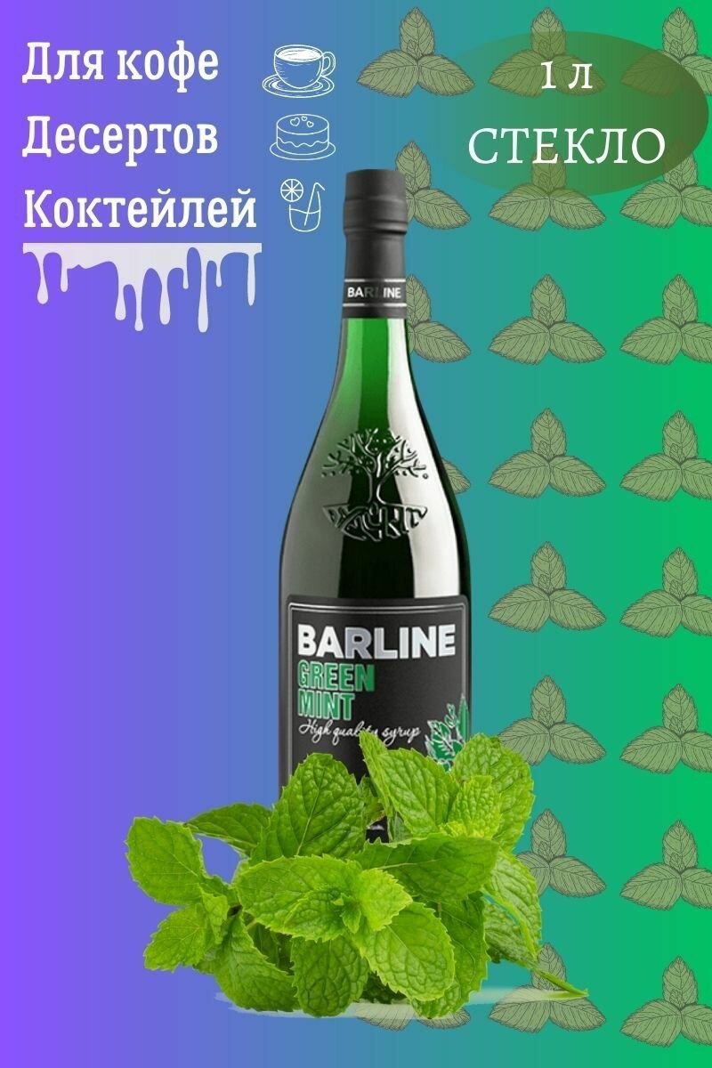 Barline Сироп Зеленая мята (Green mint) 1л, для кофе, чая, коктейлей, напитков и десертов, стекло , Барлайн