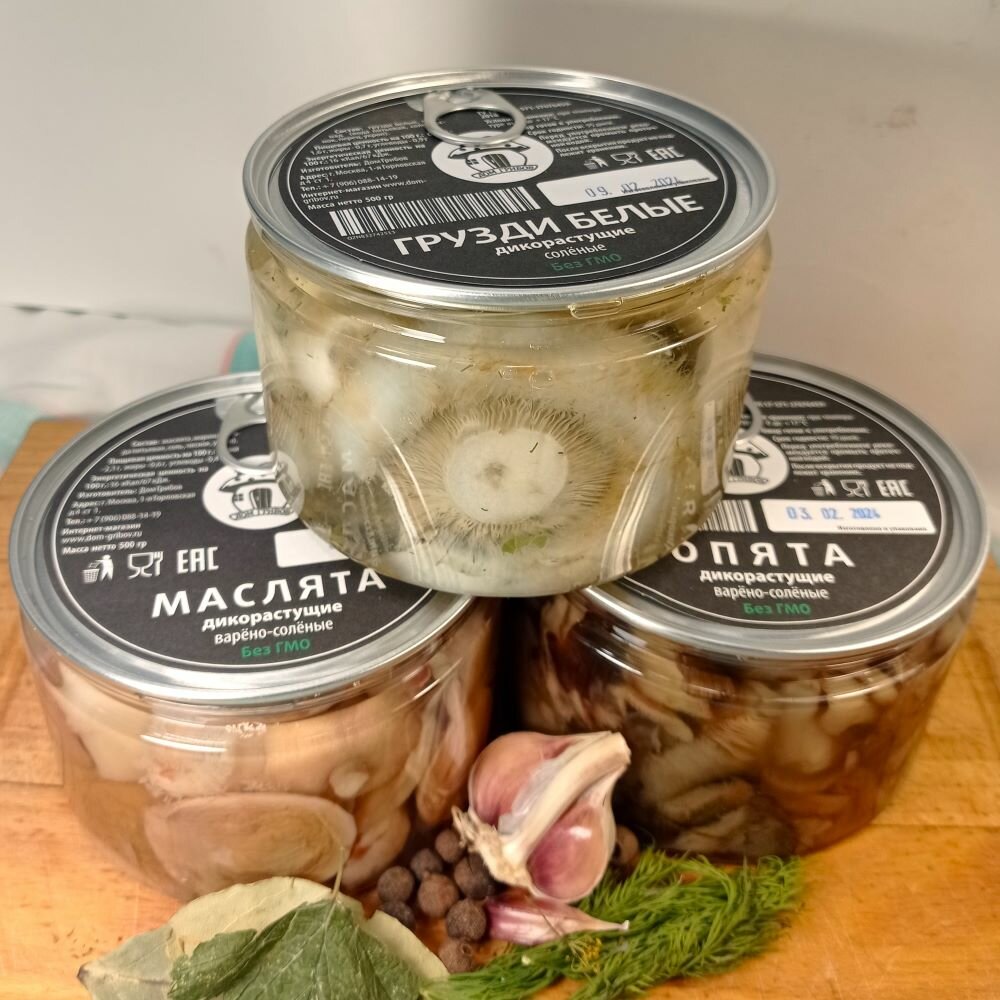 | Состав | Соленые грибы : опята , рыжики , грузди белые , маринад : вода , соль ,сахар , перец горошком , лавровый лист , зерна горчицы . |