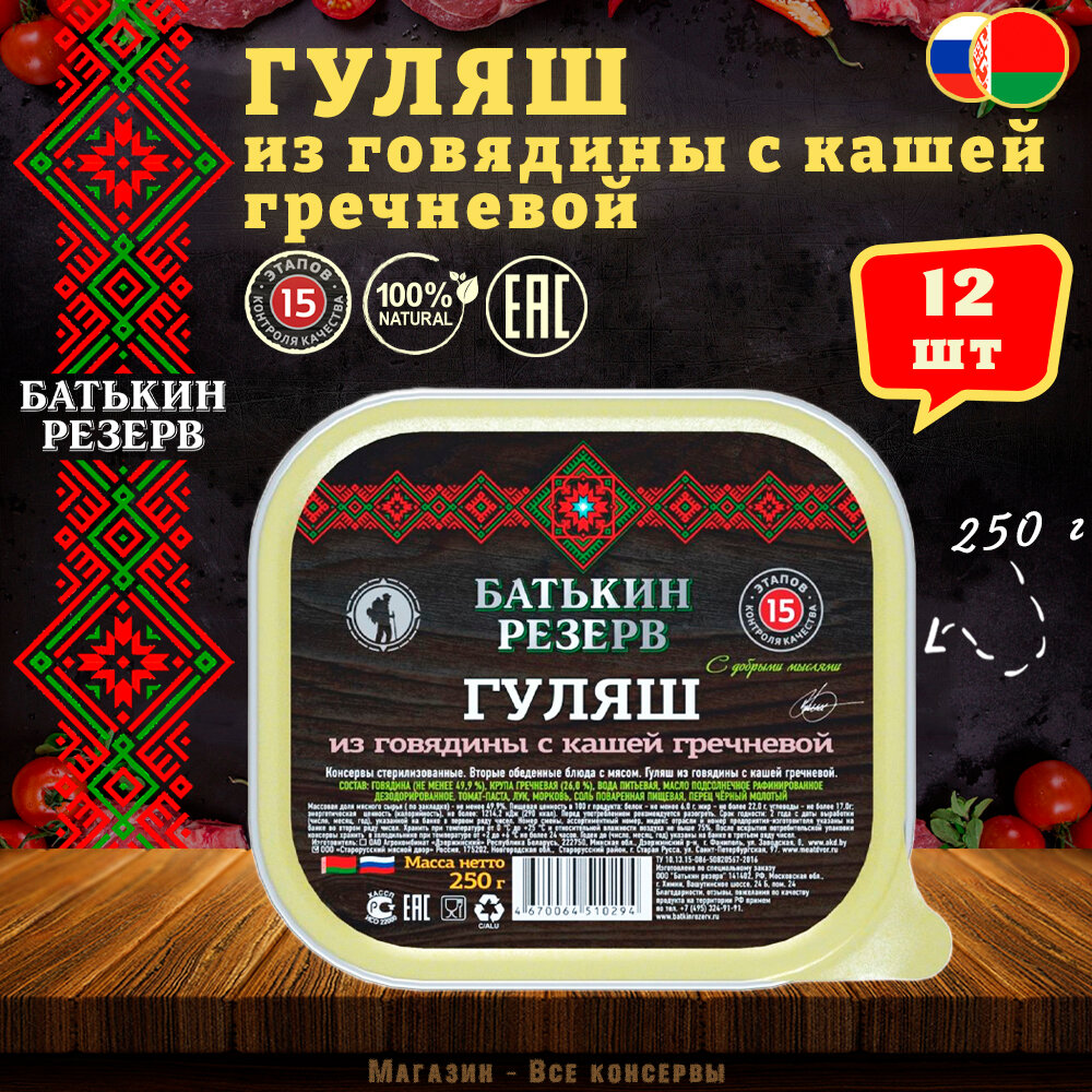 Купить Гуляш из говядины с кашей гречневой, Батькин резерв, ТУ, ламистер, 12 шт. по 250 г