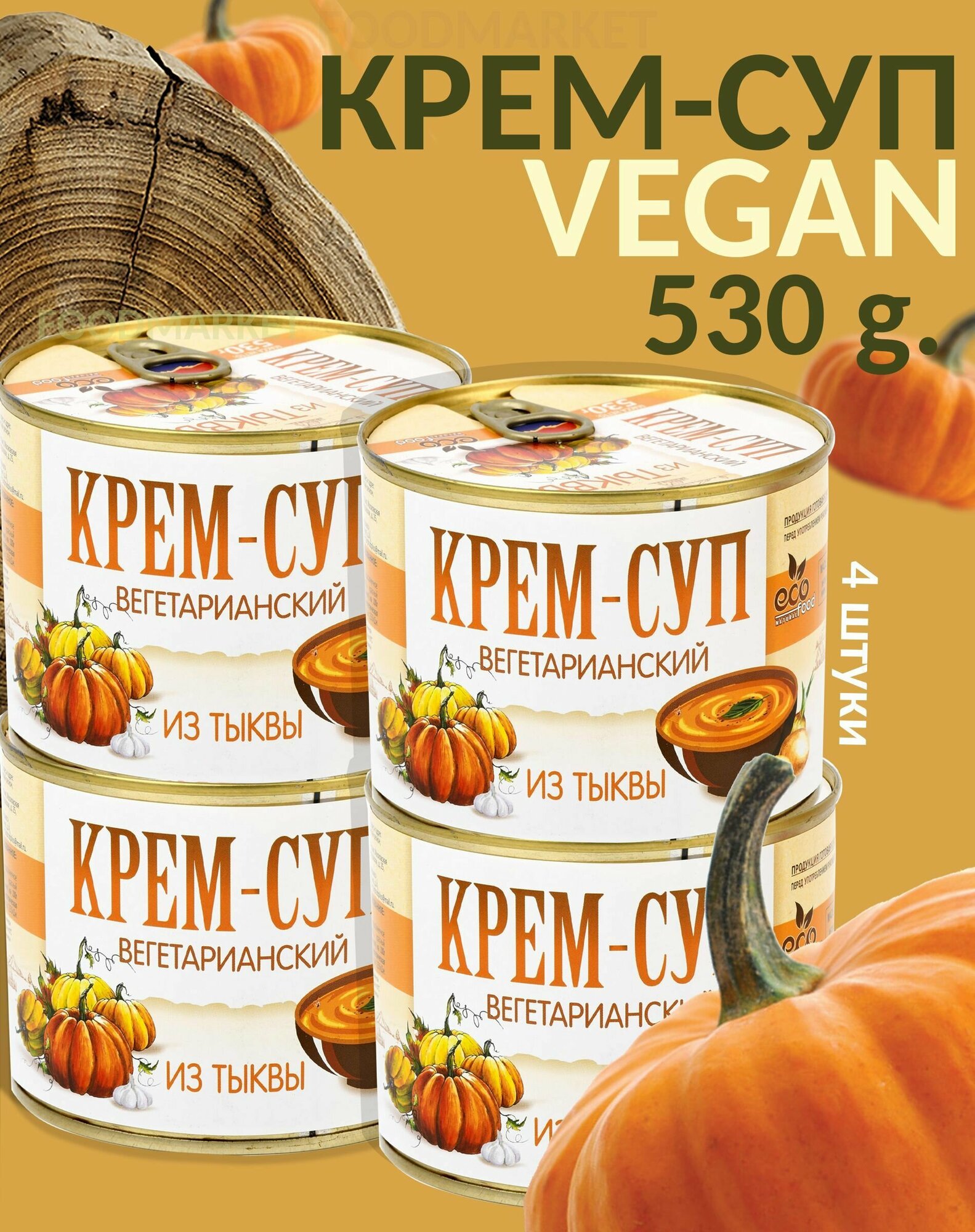 Крем-суп вегетарианский из тыквы, 530г х 4шт ECOFOOD (Аремния)
