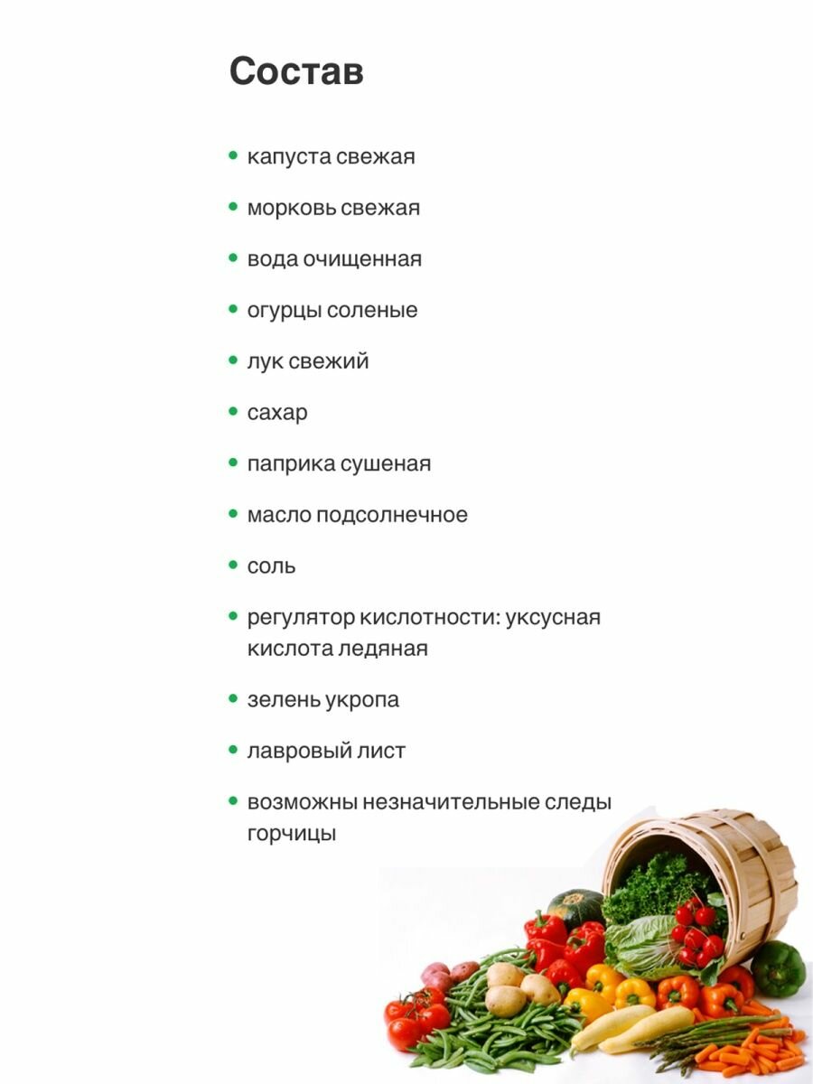 | Состав | Перец сладкий, морковь свежая, лук свежий, масло подсолнечное, томатная паста, сахар, соль, регулятор кислотности - уксусная кислота, перец красный молотый. |