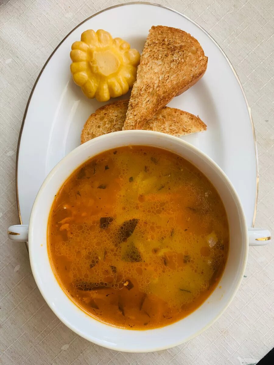 | Состав | картофель свежий, крупа перловая, морковь, помидоры соленые, паста томатная, масло растительное, соль, лук репчатый, сахар, укроп сушеный, лист лавровый |