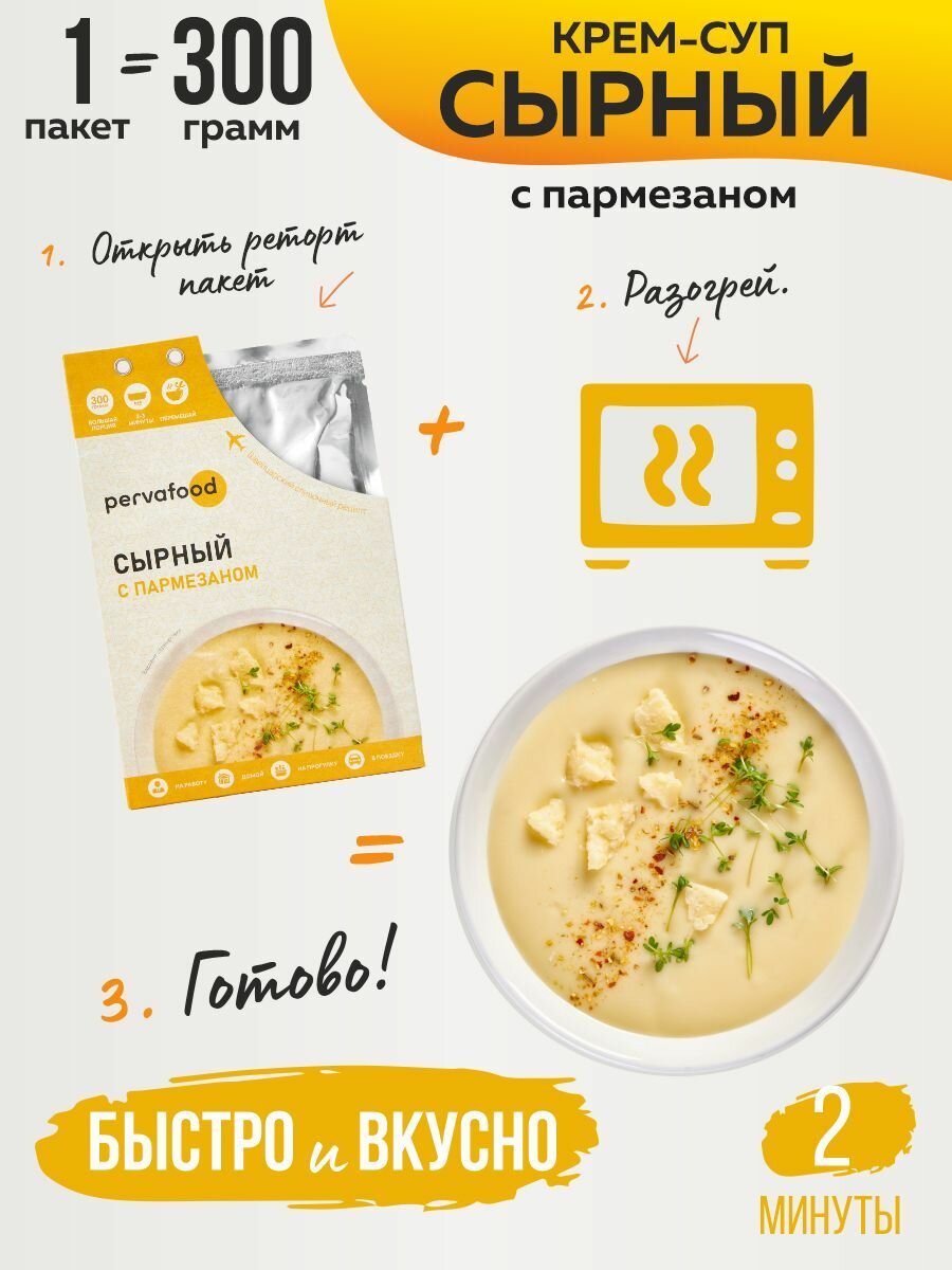 Pervafood сырный крем-суп с пармезаном 300 гр-6 шт, суп из сыра, готовая еда, готовое блюдо