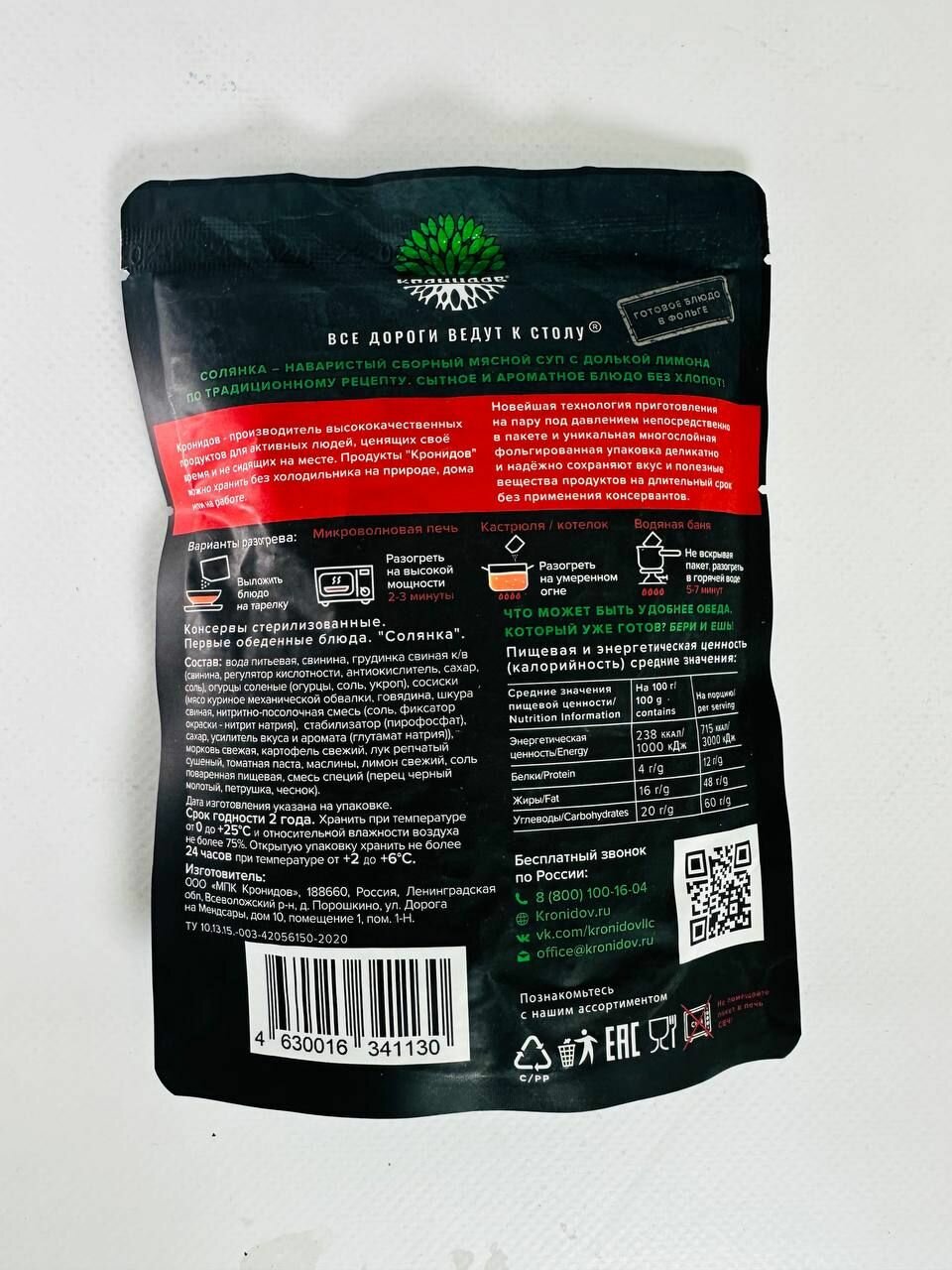 СохранитьГотовое натуральное блюдо в реторт-пакете "Солянка" Кронидов Сухой паек для охоты, рыбалки, в поход Набор 3 шт. по 300 гр. интересное: