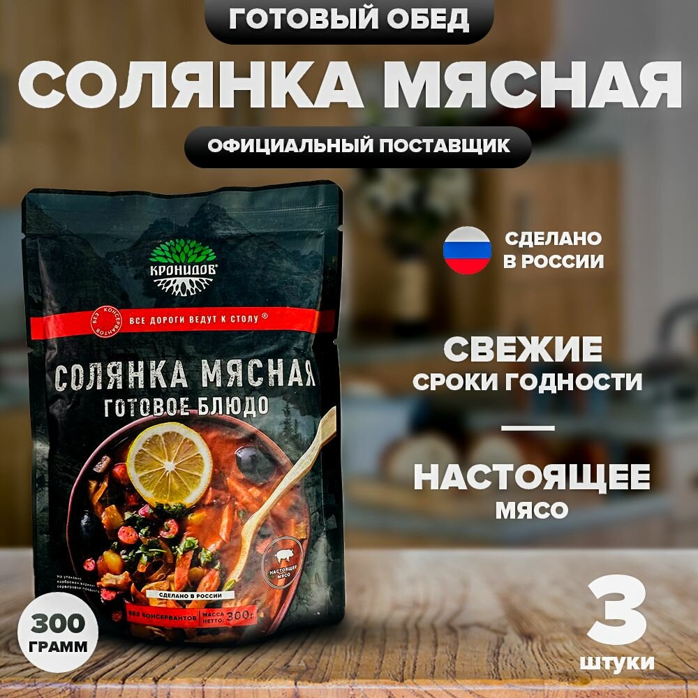 Купить Готовое натуральное блюдо в реторт-пакете "Солянка" Кронидов Сухой паек для охоты, рыбалки, в поход Набор 3 шт. по 300 гр.