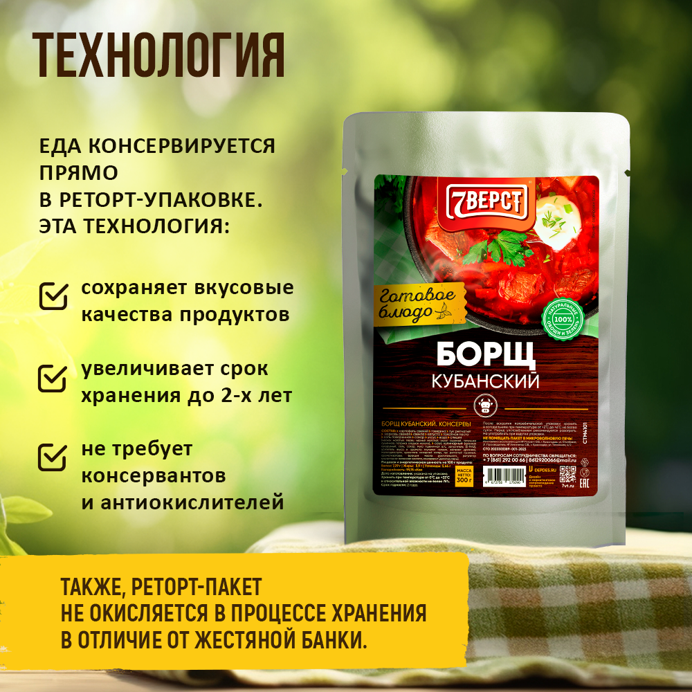 7 вёрст Борщ с говядиной. Готовая еда в реторт-пакете. Консервы натуральные. 1 уп. 300 г
