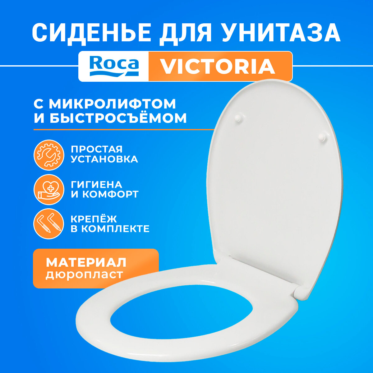 Сиденье для унитаза Roca Victoria, арт. ZRU8013920, дюропласт, с микролифтом, быстросъемное