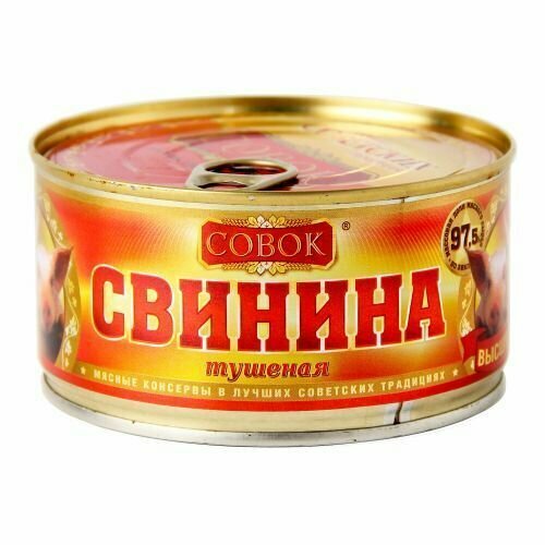 Тушенка "Совок", высший сорт, свинина, ГОСТ, органический продукт, 325 гр