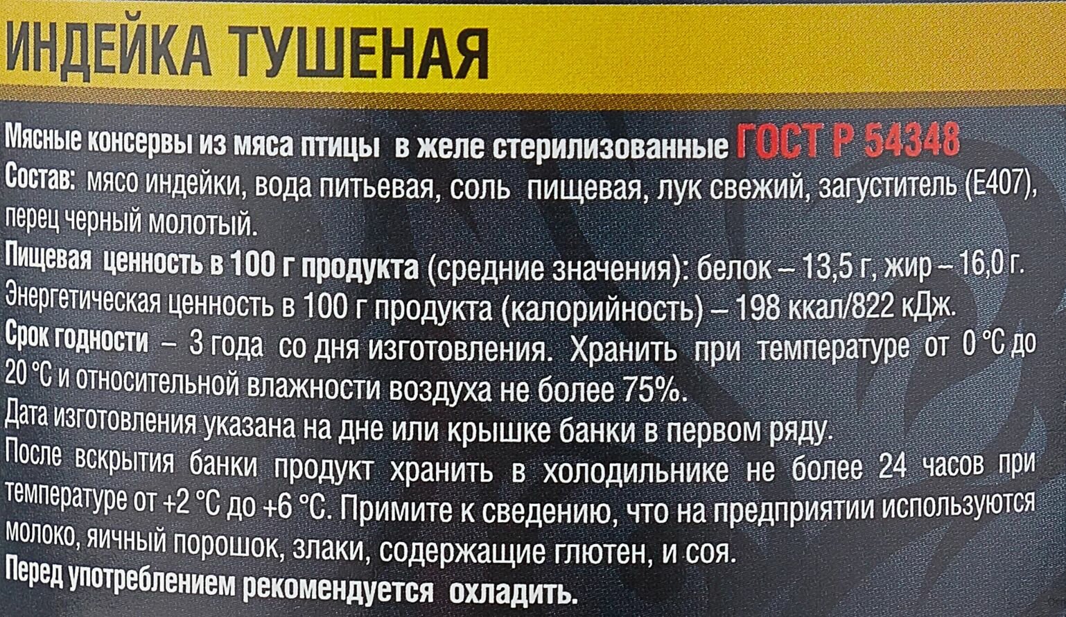 Индейка тушеная "рузком" ГОСТ 325 гр. 1 шт. интересное: