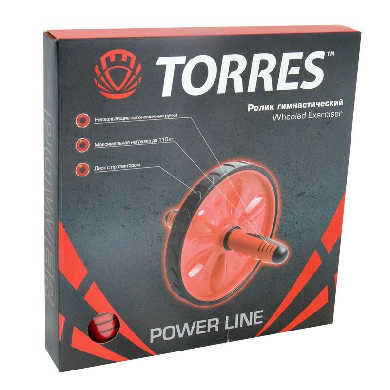 Ролик гимнастический "TORRES" арт.PL5012, металл, пластик, нескользящий протектор, крас-черн