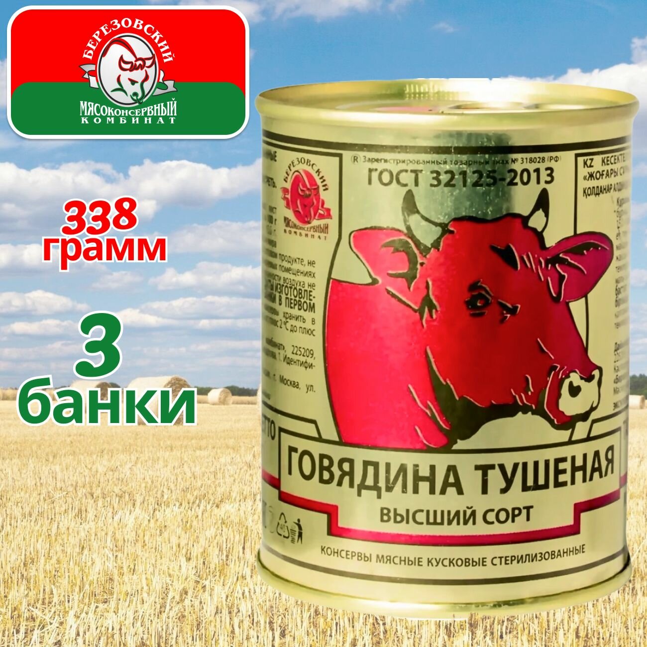Березовский мясоконсервный комбинат Тушеная говядина ГОСТ, высший сорт, 338 г, 1уп.(15шт)
