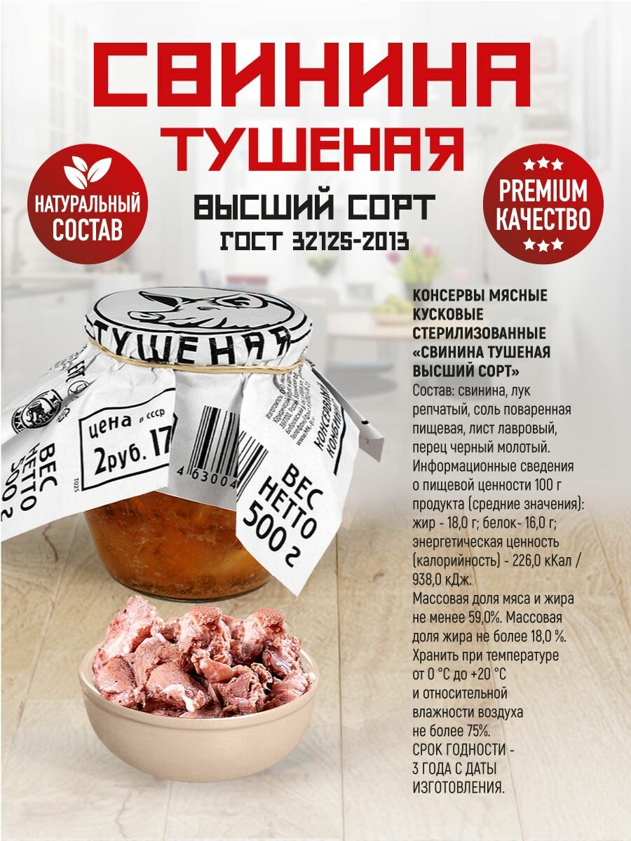 Свинина Тушеная Высший Сорт ГОСТ RusMeat премиум стекло 500 гр. - 2 шт. интересное: