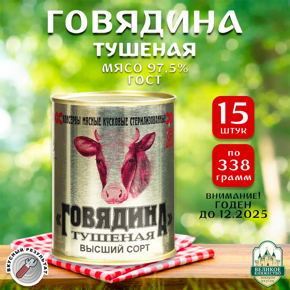 Говядина тушеная Калинкович, ГОСТ, Тушенка Белорусская, 24 шт. по 338 г