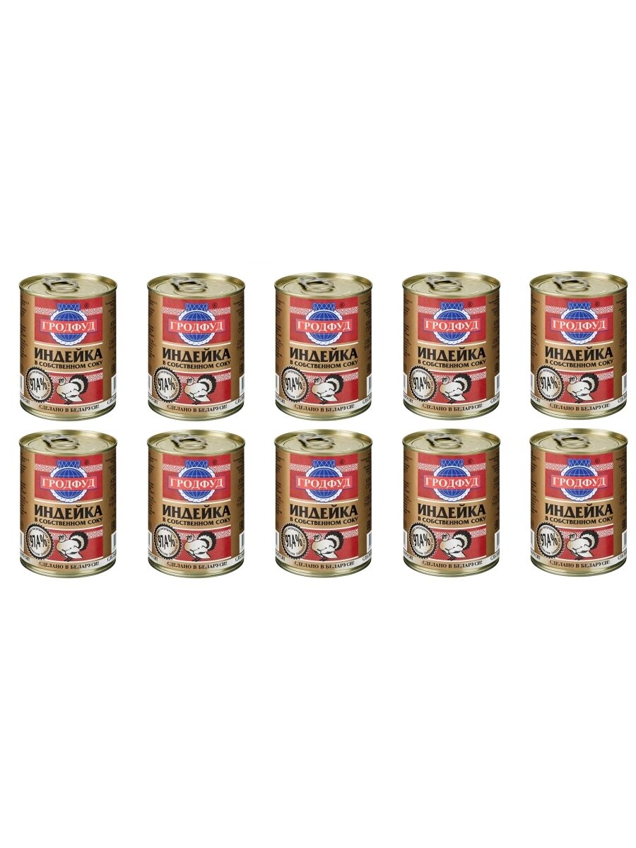 Купить Мясо индейки в собственном соку, Гродфуд, 10 шт. по 338 г
