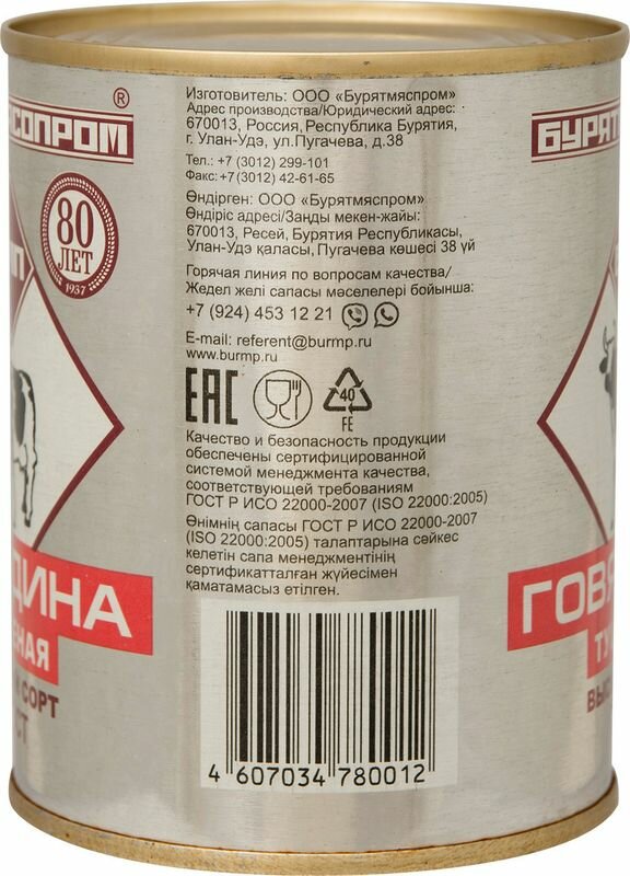 Говядина тушеная высший сорт ГОСТ 338 гр (бурятмяспром) интересное: