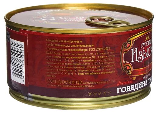 Говядина тушеная в/с"Русский изыскъ" (ГОСТ,с ключом) 325г Дейма, Калинингр.МПЗ интересное: