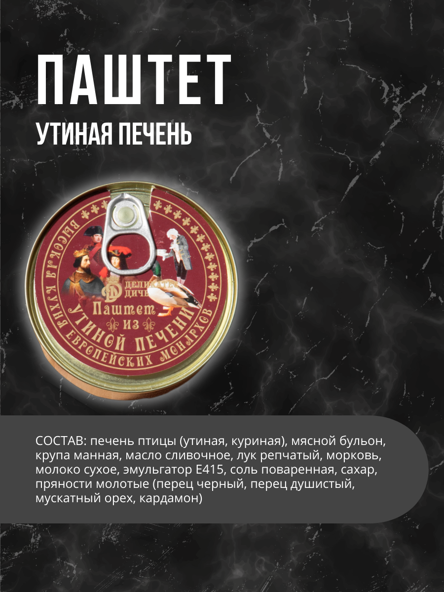 Паштет из утиной печени "Высокая кухня европейских монархов" 200 грамм интересное: