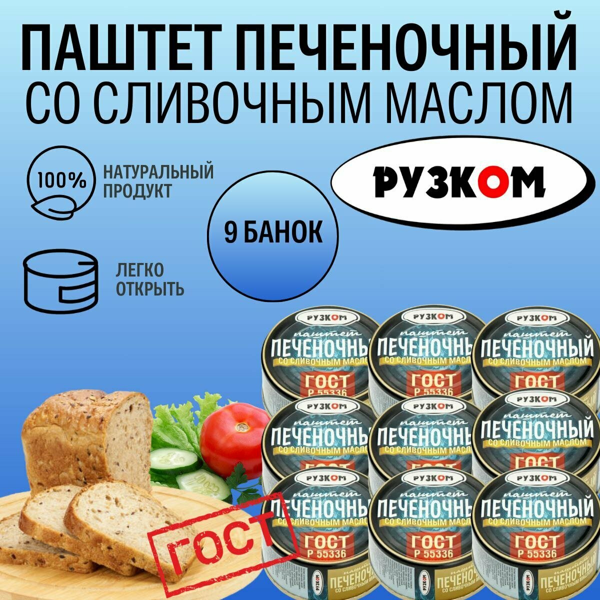 Паштет печеночный со сливочным маслом "рузком" ГОСТ 117 гр. 9 шт. интересное: