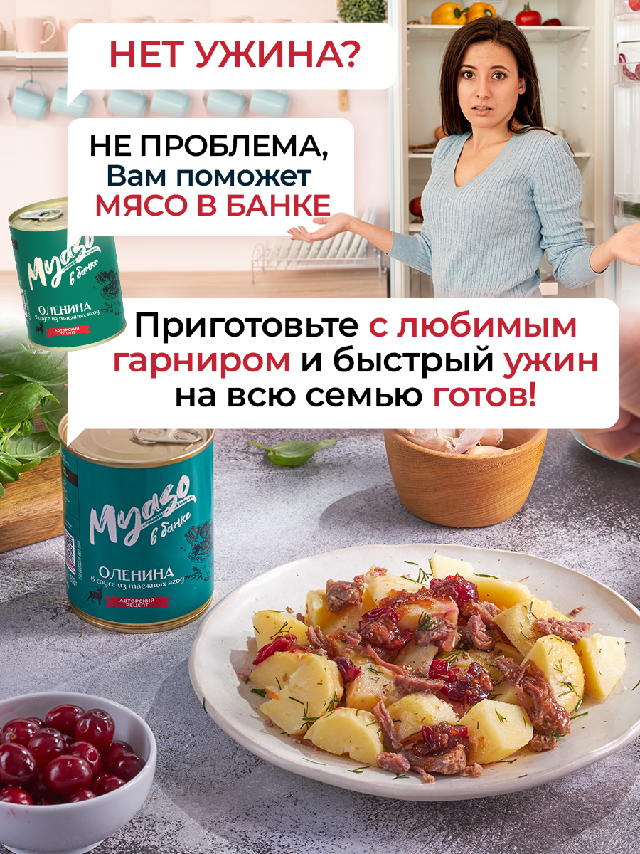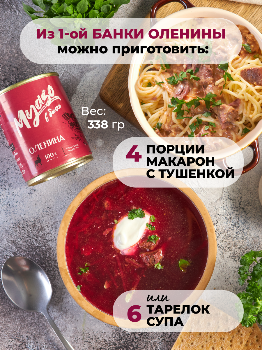 Тушенка, консервы мясные, Оленина 338 гр - Мясо в банке - 2 шт интересное: