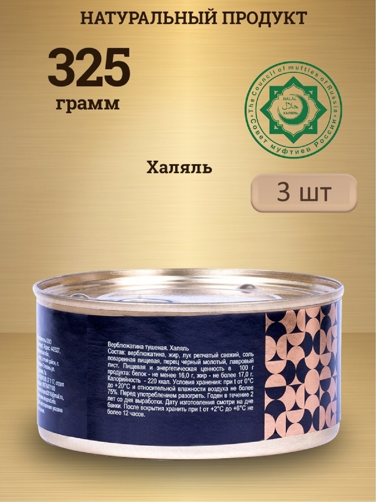 Купить Верблюжатина тушеная консервы мясные тушенка экопрод халяль 325 г, 3 шт.