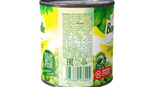 | Состав | зеленый горошек, вода, сахар, соль |