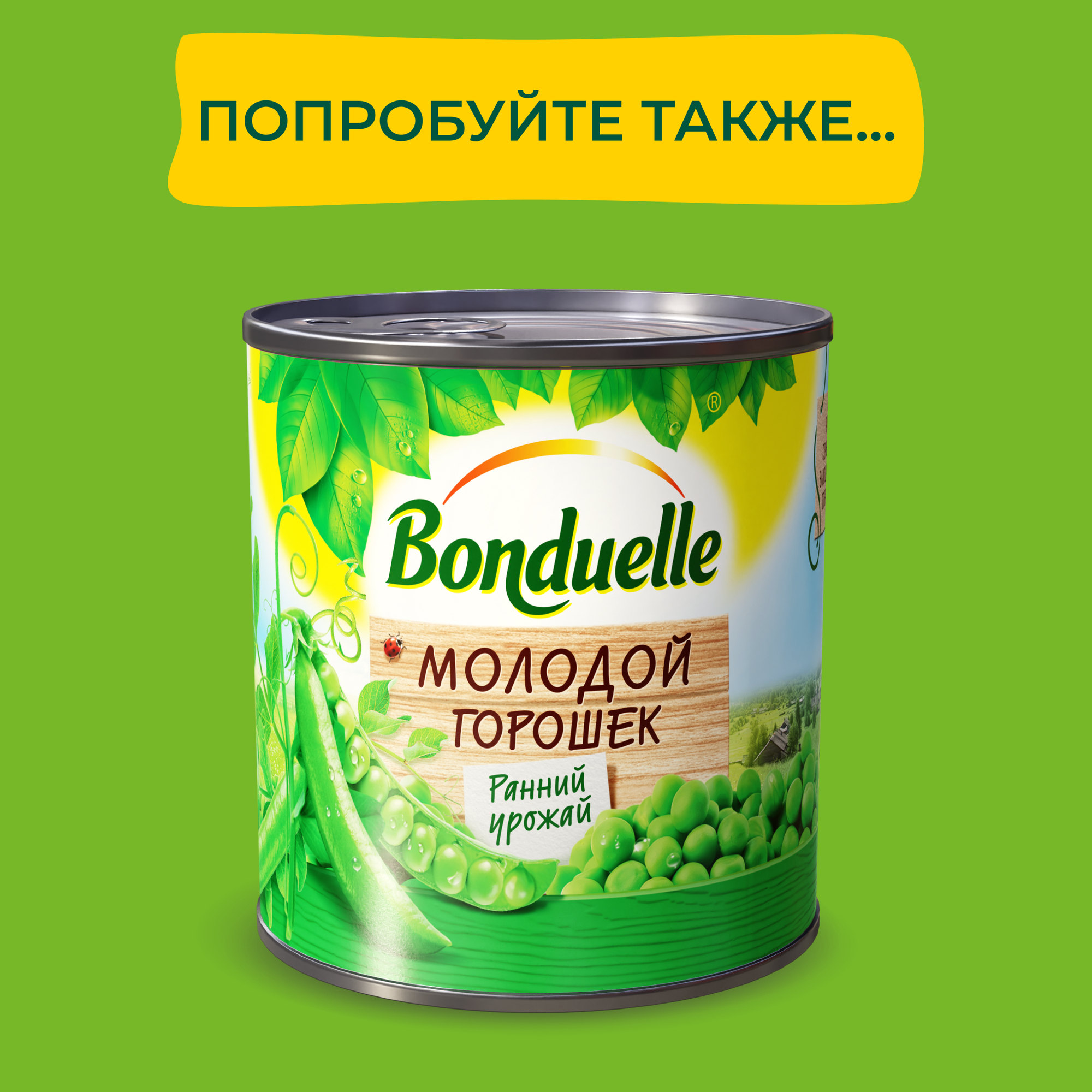 Горошек Bonduelle зеленый молодой, жестяная банка