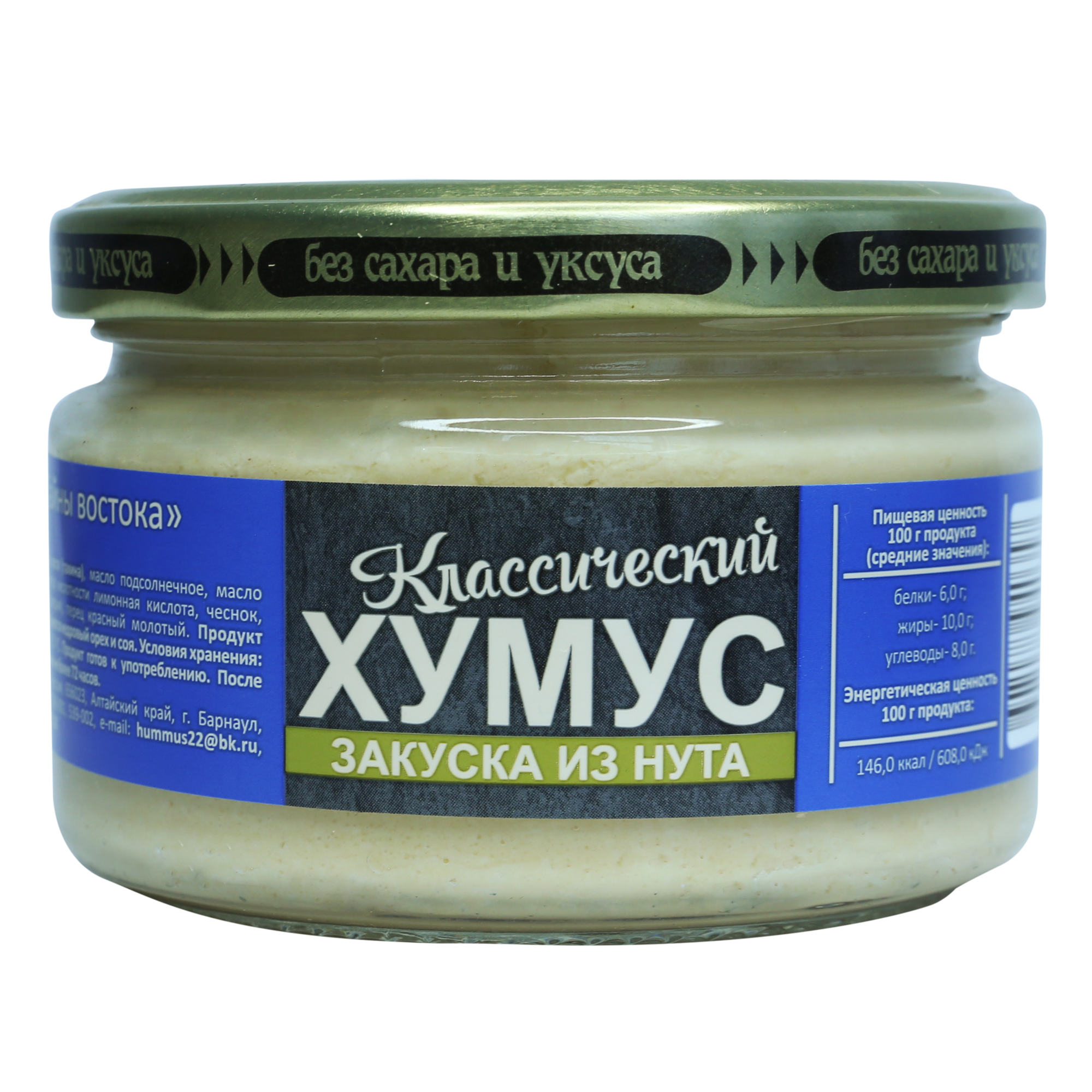 | Состав | нут, вода питьевая, кунжутная паста (тахина), масло подсолнечное, масло оливковое, соль, семя кунжута, регулятор кислотности лимонная кислота, чеснок, консерванты бензоат натрия, перец красный молотый |