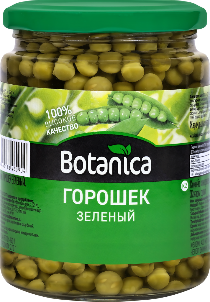 Горошек зеленый консервированный, Botanica, 450 мл интересное: