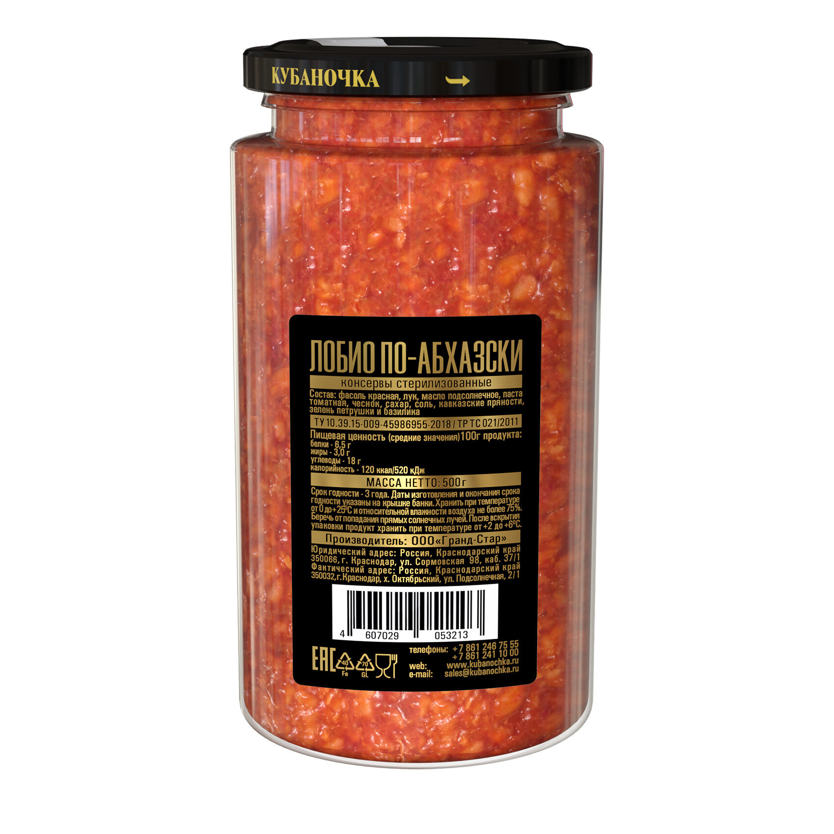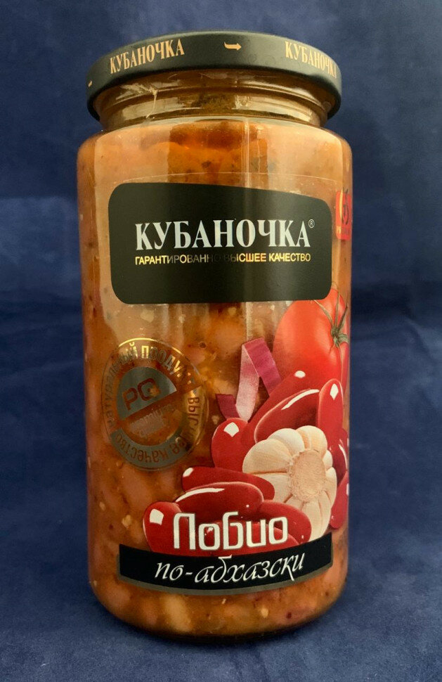 | Состав | Фасоль красная, лук, подсолнечное масло, томатная паста, чеснок, сахар, соль, кавказские пряности, зелень петрушки и базилика |