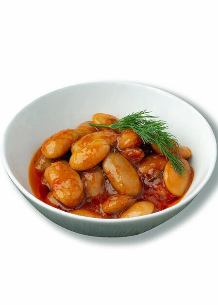 | Состав | белая гигантская фасоль, помидоры, лук, растительное масло, томатная паста, специи, соль |