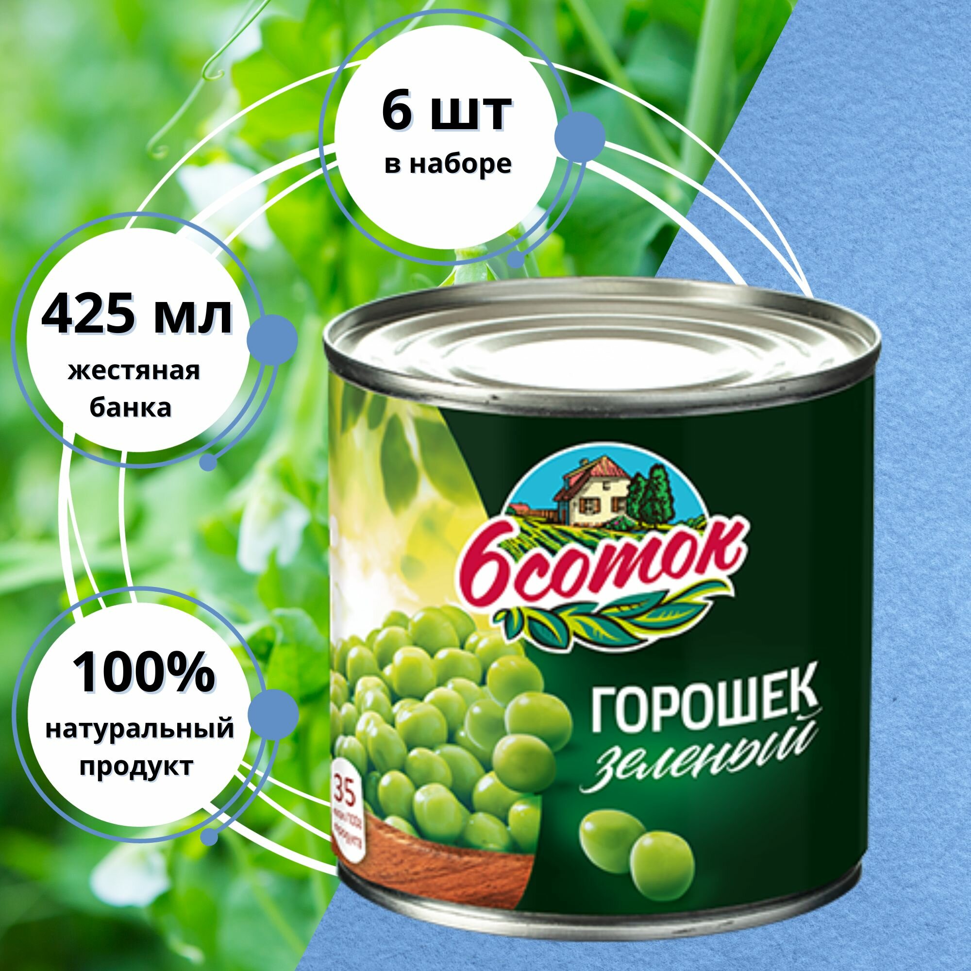 Купить Горошек зелёный 6 Соток, 6 x 425 мл