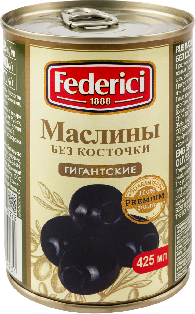 Маслины без косточки 3 кг Federici, 1 жестяная банка