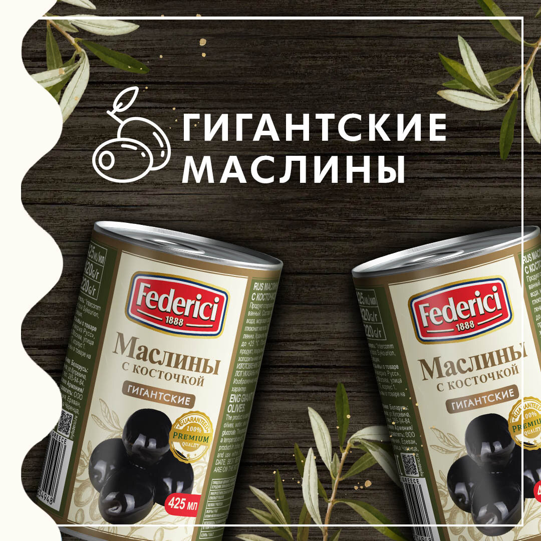 СохранитьМаслины Federici "Гигантсткие", крупные с косточкой, 420 гр., Италия интересное: