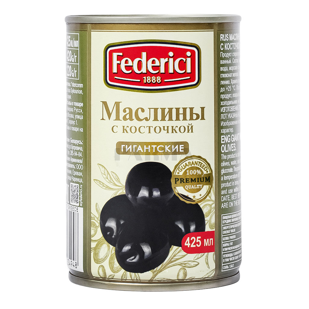 Купить Маслины Federici "Гигантсткие", крупные с косточкой, 420 гр., Италия