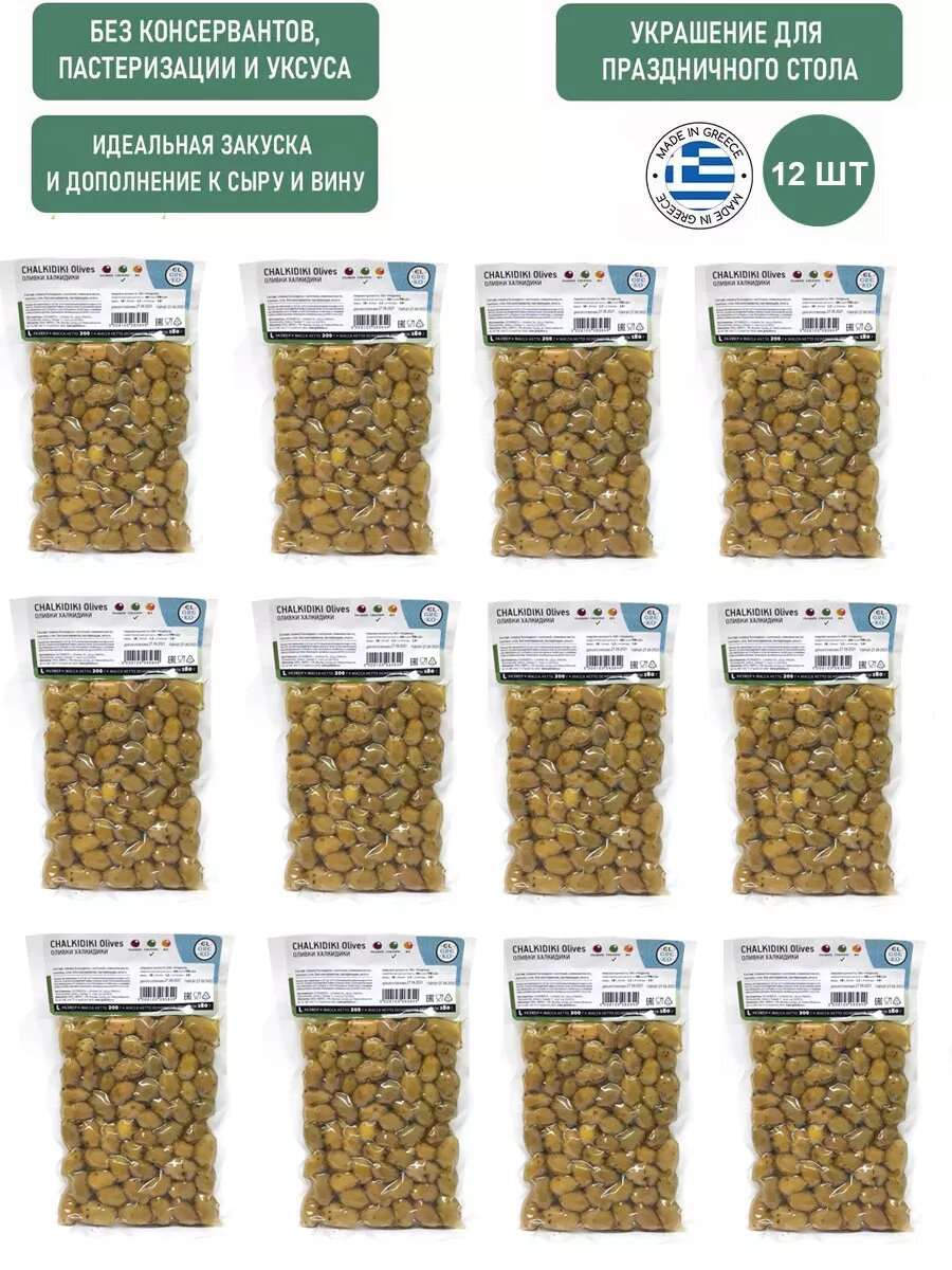 Оливки Халкидики с косточкой зеленые, Греция, 12шт, 2400г интересное: