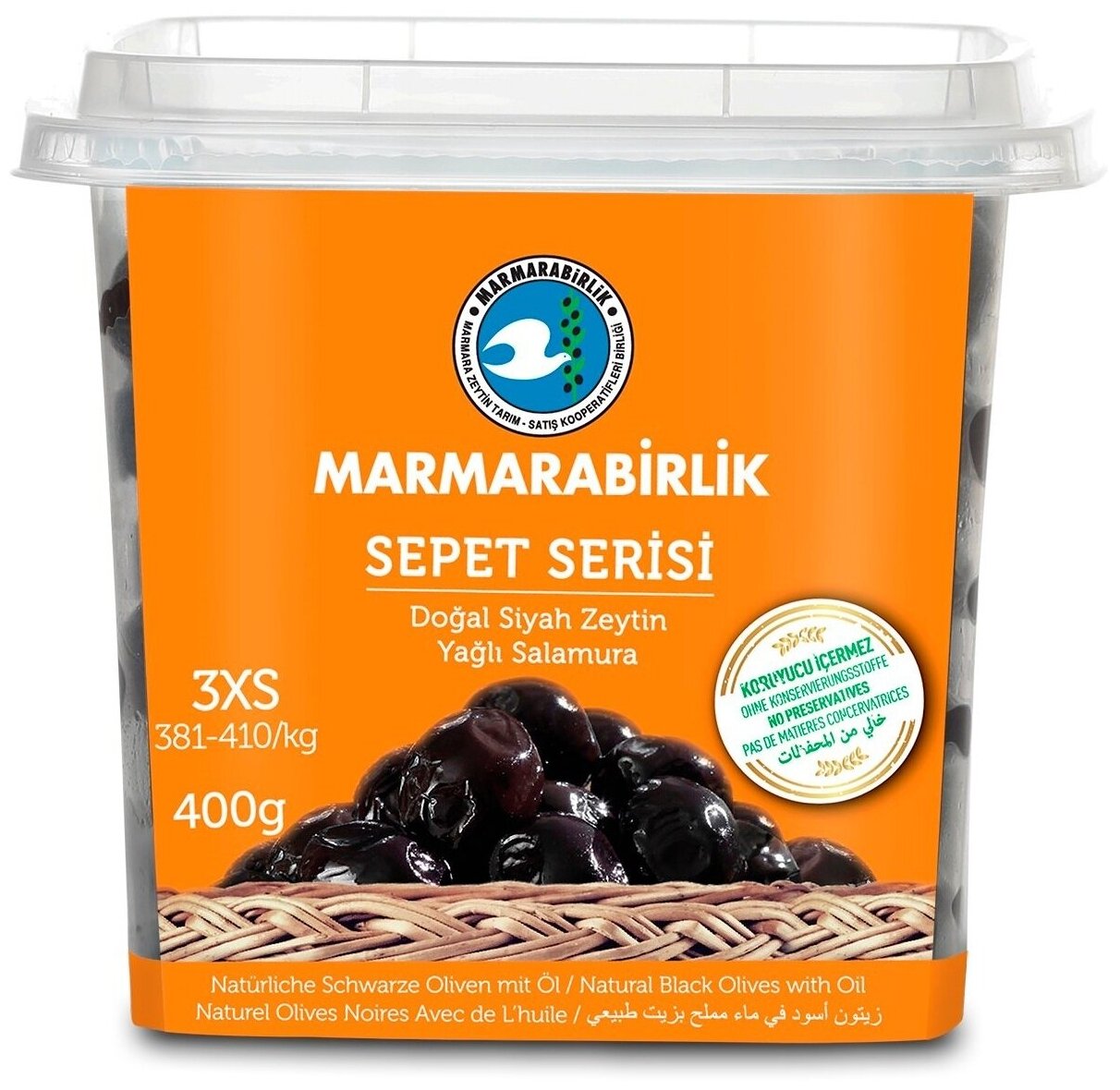 Купить Маслины MARMARABIRLIK, SEPET SERISI 3XS, с косточкой, натуральные, пл/б, 400 г