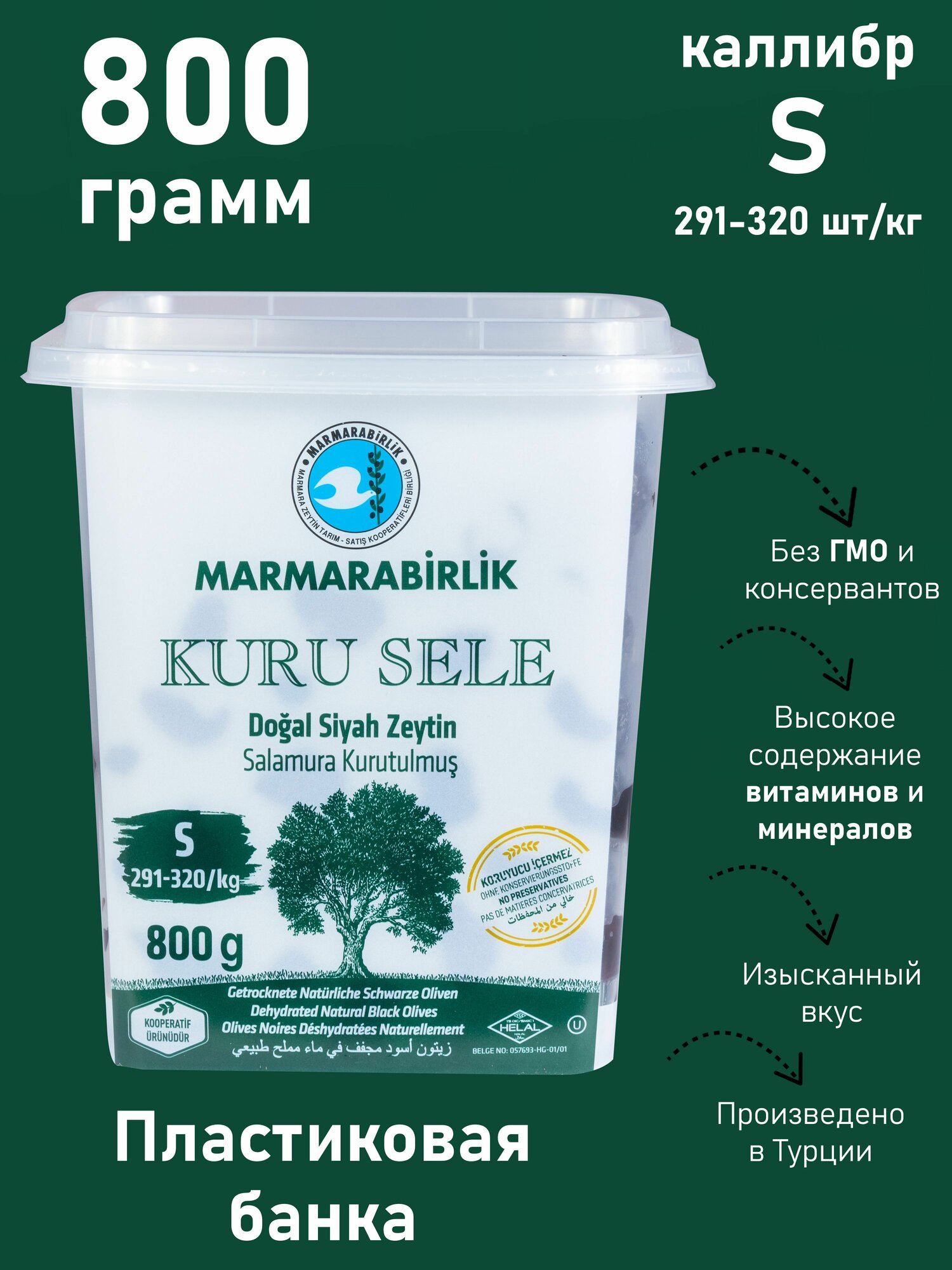 Bяленые маслины MARMARABIRLIK, cерия KURU SELE, калибровка S, 800 гр интересное: