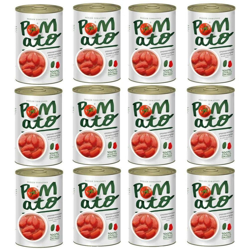Купить Помидоры Pomato очищенные в собственном соку, 400 г * 12 шт.