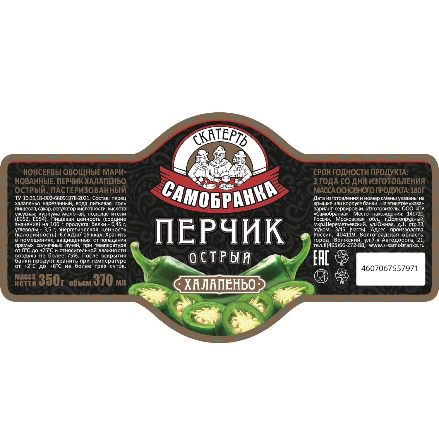 Скатерть-Самобранка Перец Халапеньо маринованный, 370 мл интересное: