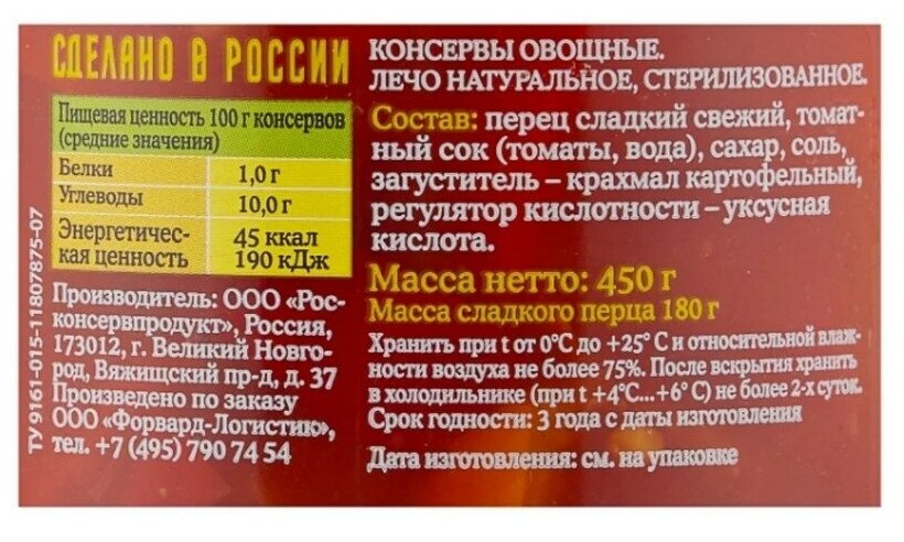 | Состав | перец сладкий свежий, томатный сок прямого отжима, сахар, томатная паста, соль, загуститель - крахмал картофельный, регулятор кислотности - уксусная кислота |