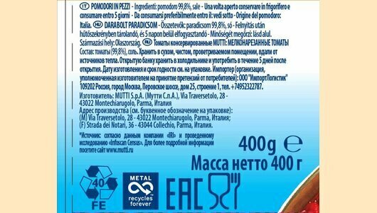 Ниже Вы можете прочитать отзывы на Мелконарезанные томаты Mutti (Мутти), Италия, ж/б 400 г х 1шт, ознакомится с подробными характеристиками, посмотреть интересные обзоры и фотографии на Мелконарезанные томаты Mutti (Мутти), Италия, ж/б 400 г х 1шт.